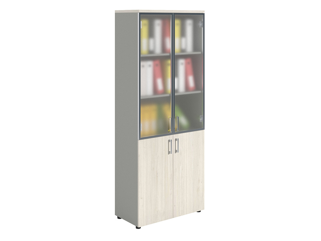 Шкаф NW 2080/2G со стеклом белое дерево/серый