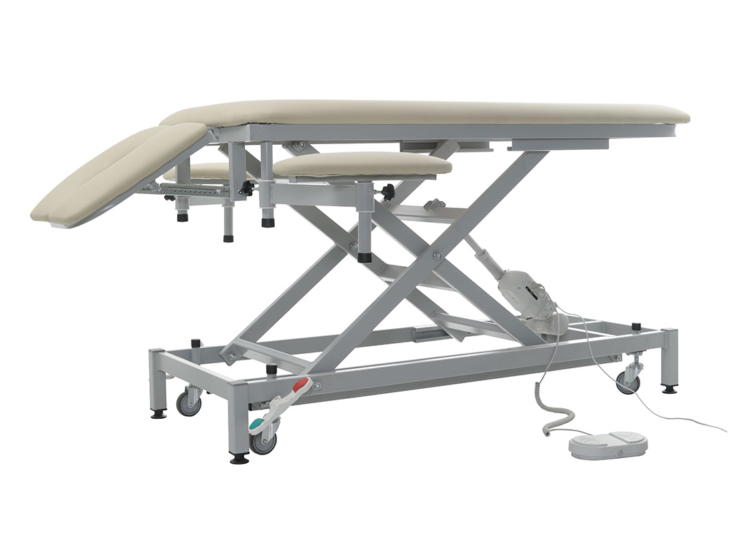 регулировка высоты осуществляется с помощью педали и электропривода. Диапазон регулировки от 625 до 885 мм