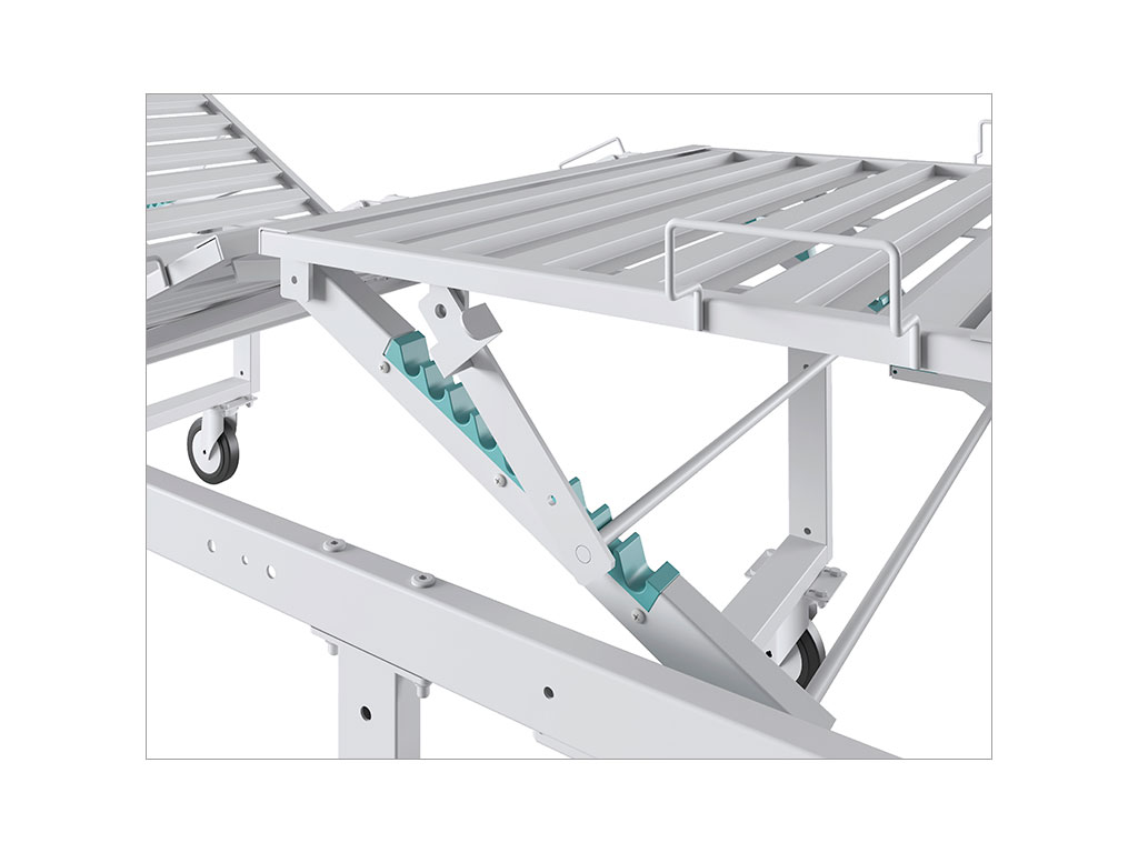 трехсекционное ложе с механической регулировкой секций (спинной, ножной и тазобедренной), каркас изготовлен из профильной трубы прямоугольного сечения 50х25мм , покрыта эпоксидно-порошковой краской;