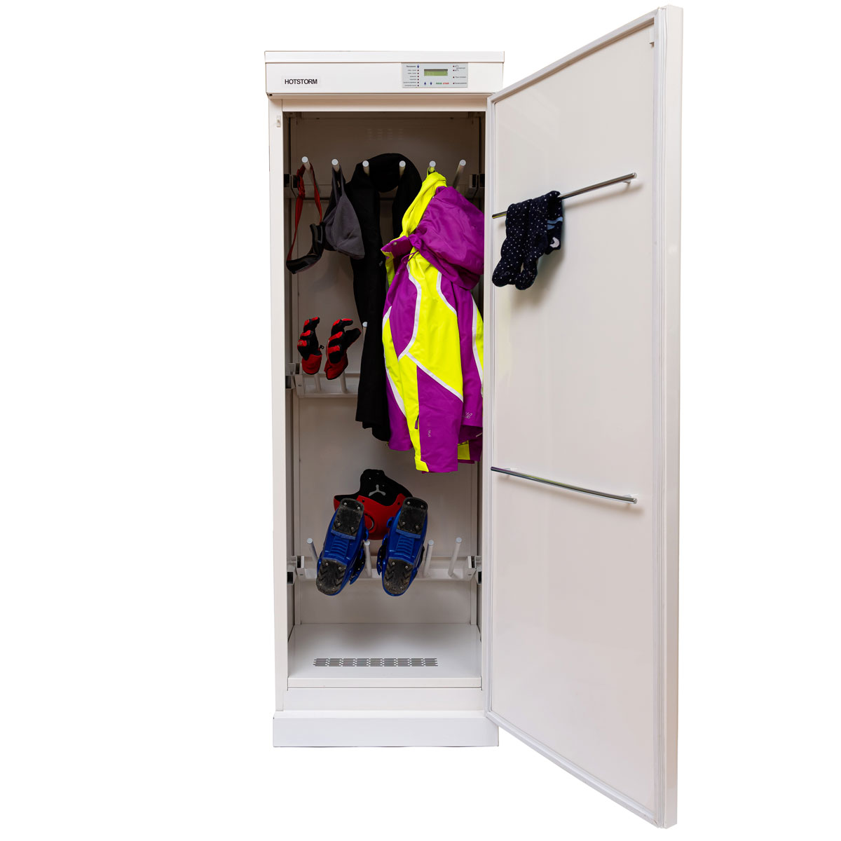 Сушильный шкаф «Hotstorm» предназначен для сушки мокрой одежды, обуви, белья, а также различной спортивной формы и инвентаря.