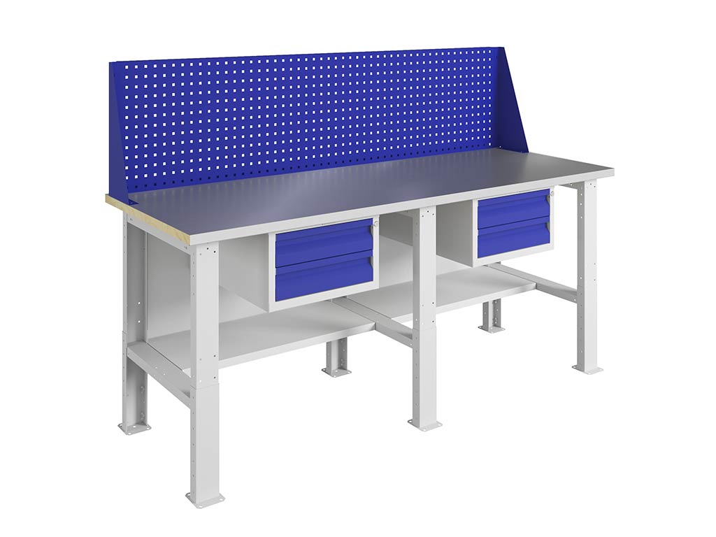 дополнительно производственный стол можно укомплектовать перфорированным экраном соответствующего размера, светодиодным освещением и аксессуарами для инструментов
