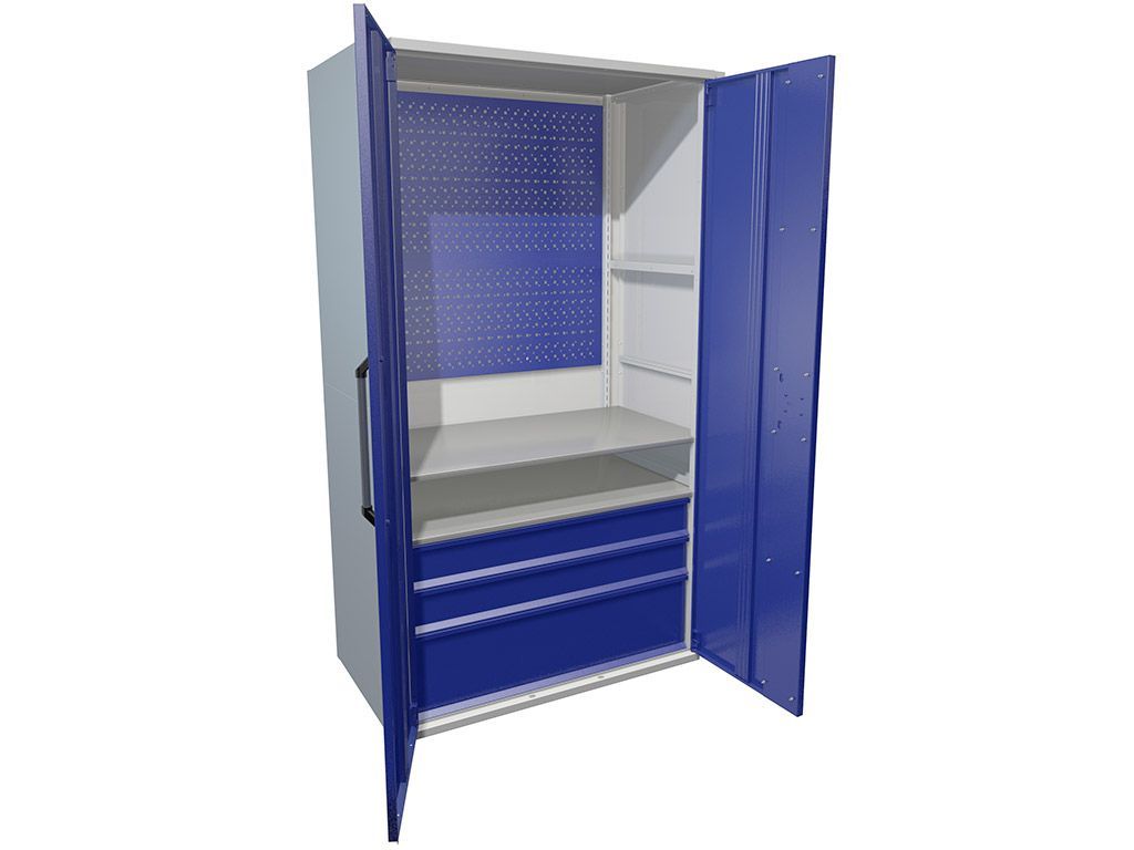 корпус серый полуматовый (RAL 7038), двери синие (RAL 5002) |