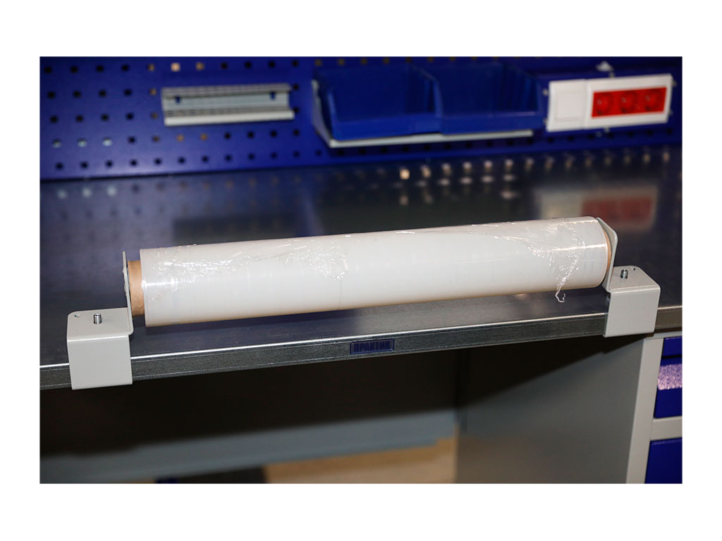 Предназначен для надежной установки рулона со стретч пленкой к столешнице верстака, а так же стола комплектовщика.